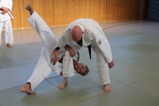 Auf dem Plan stand „Abwehren von Revers- und Kragenfassen“. Reihum demonstrierte jeder eine Technik zu diesem Thema, die dann gemeinsam von allen trainiert wurde.
