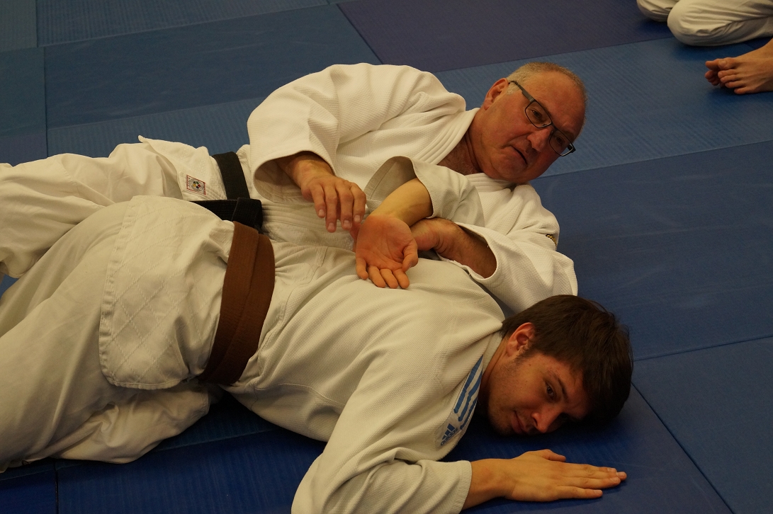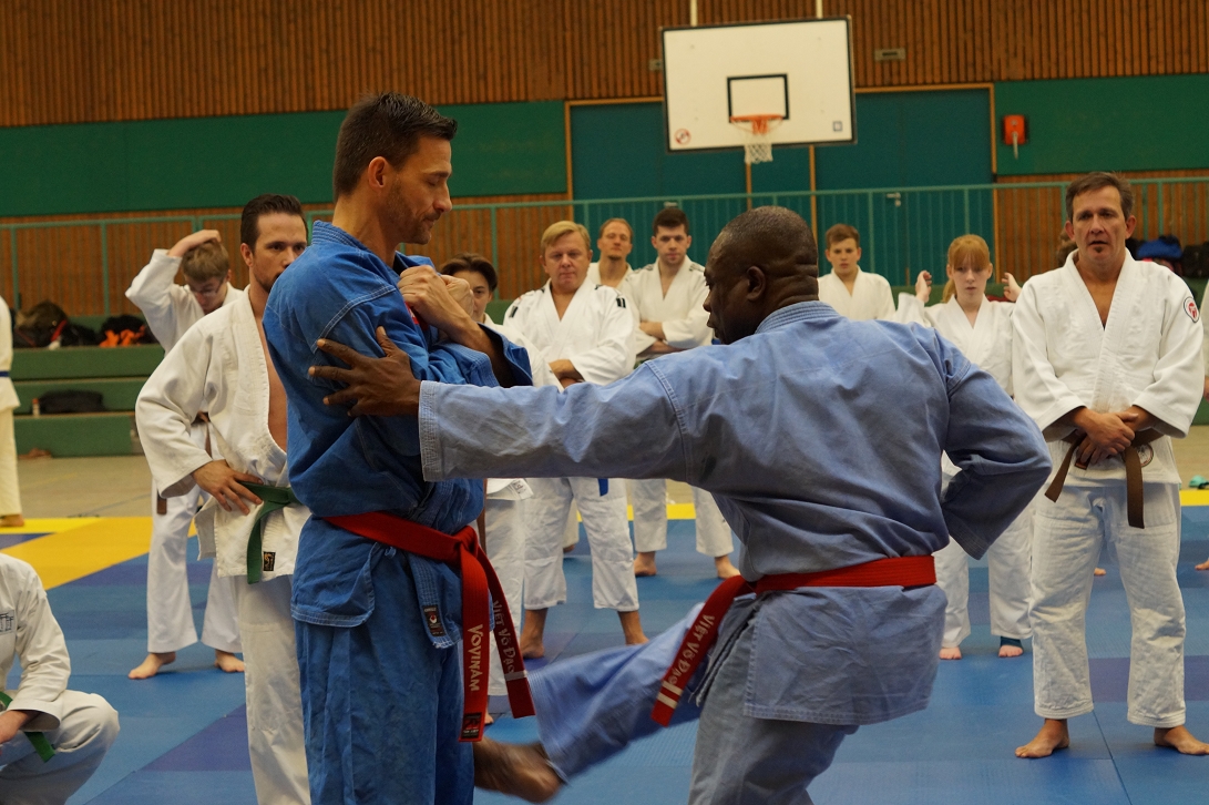 Sein Lehrgangsthema waren sowohl Fußtechniken als auch Hebeltechniken.