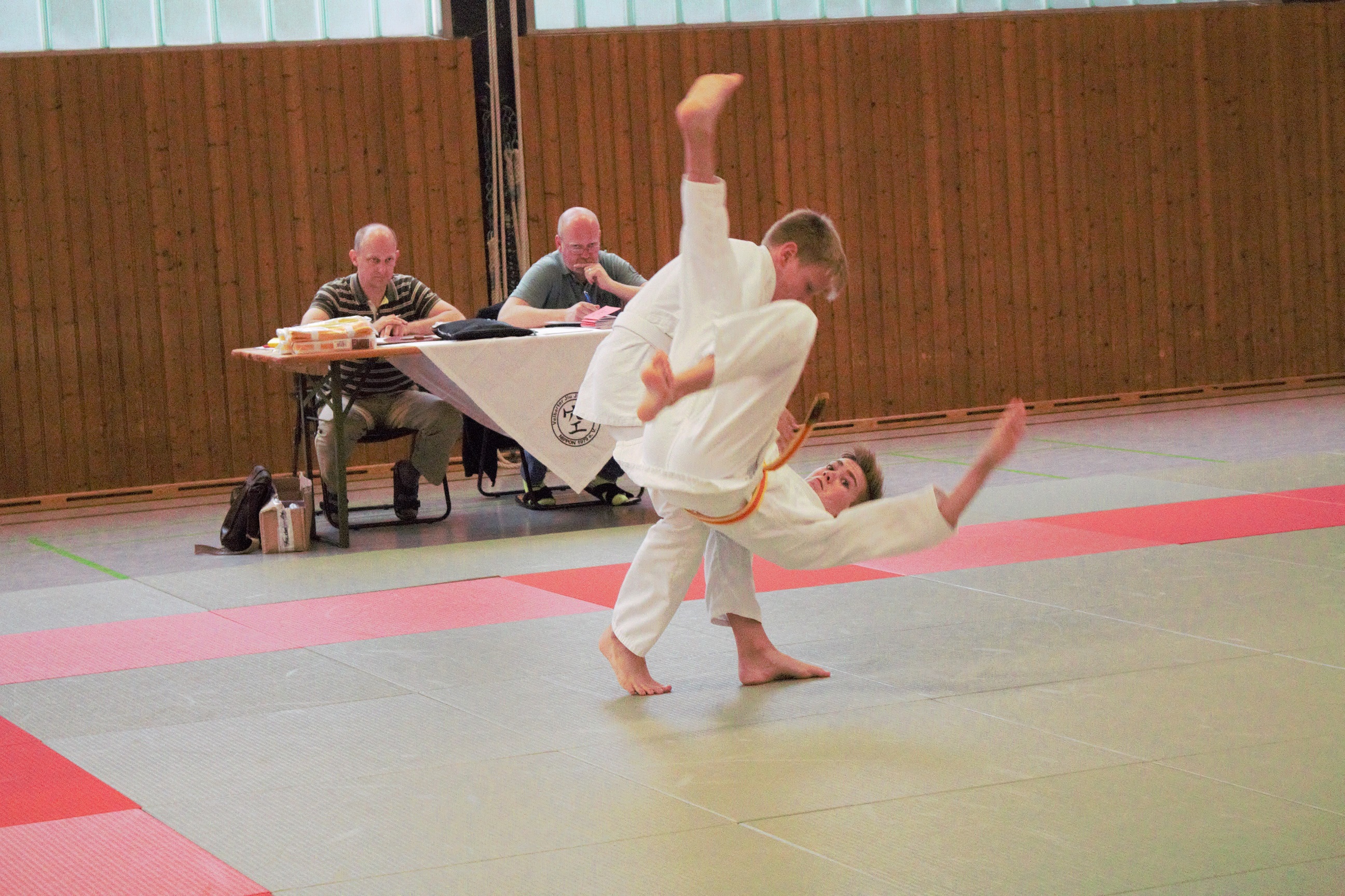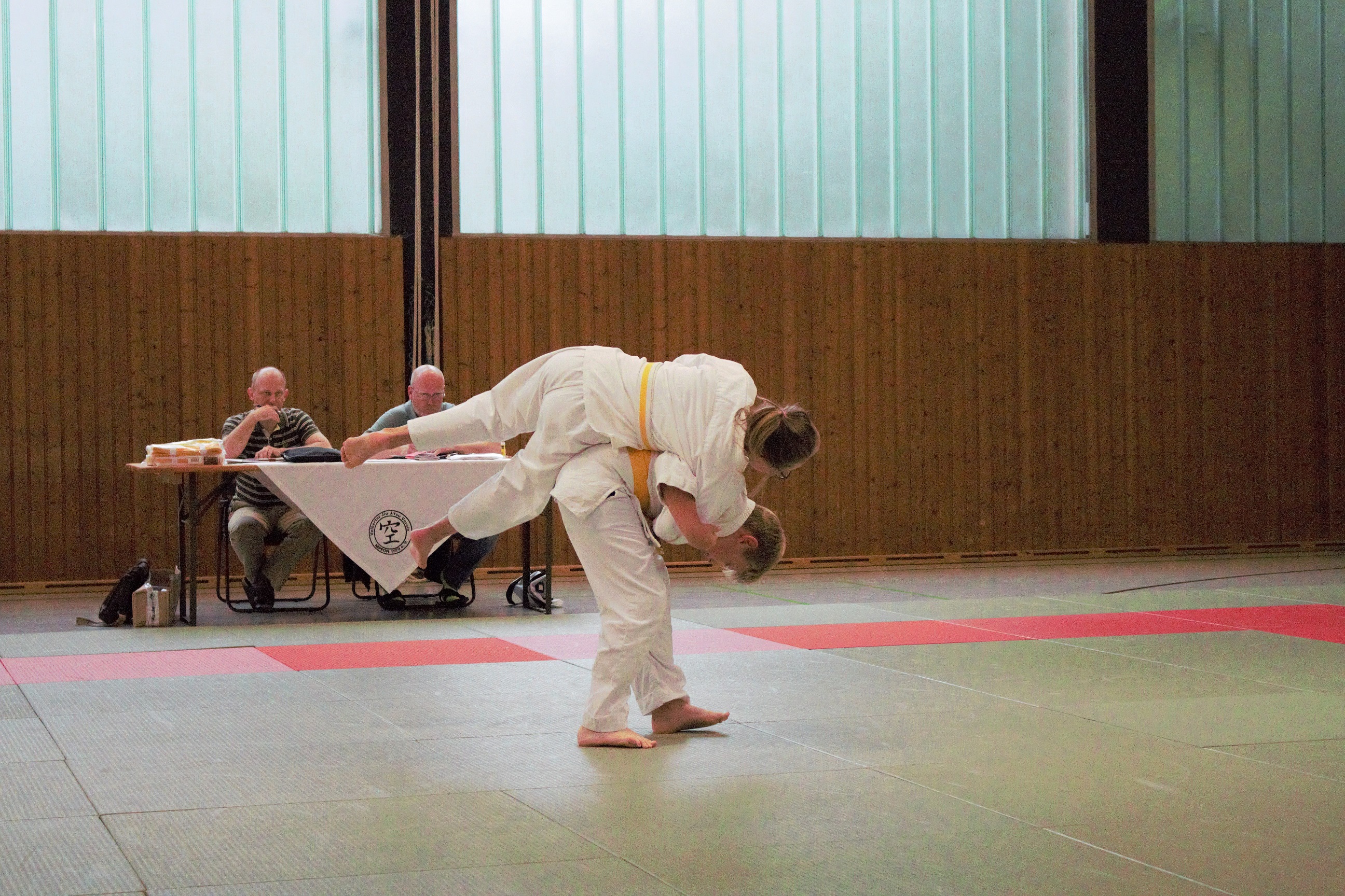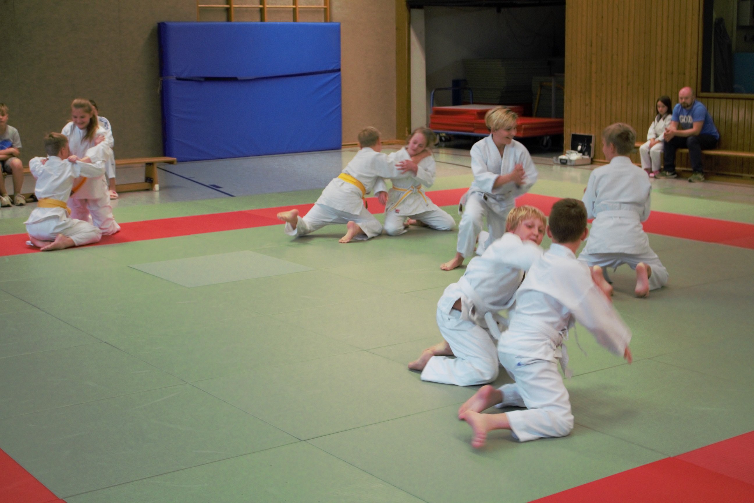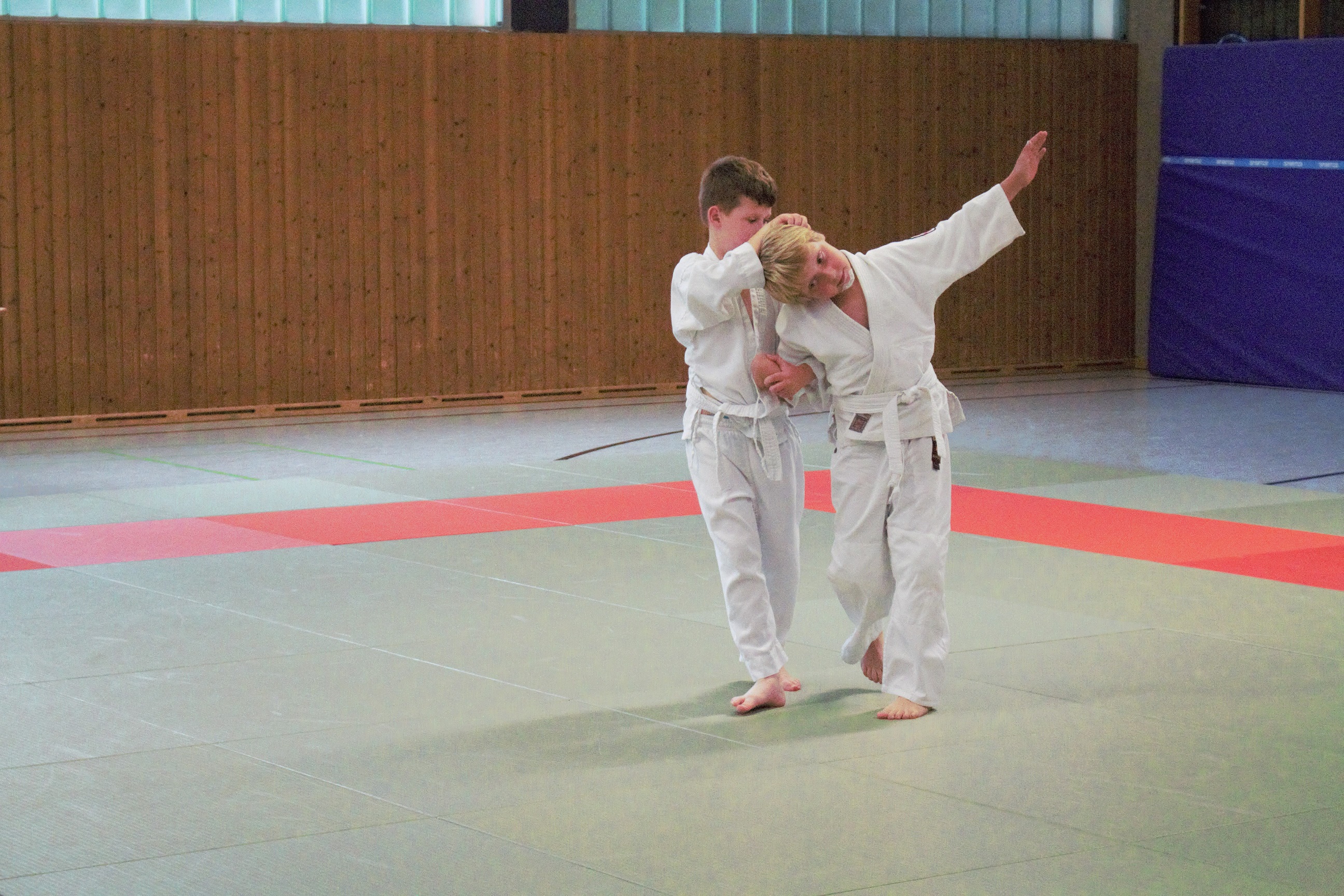 Wie immer begannen die Jiu-Kids mit ihren Vorführungen und ernteten sieben mal einen verdienten Applaus. Zwei der Kids hatten eine besondere Herausforderung. Da ihre Partner kurzfristig ausgefallen waren, sprangen Jugendtrainer Adam und Erwachsenentrainerin Andrea bereitwillig ein.