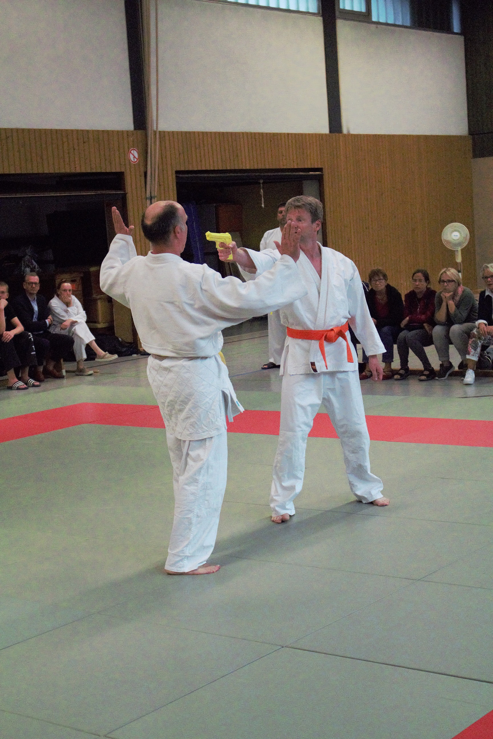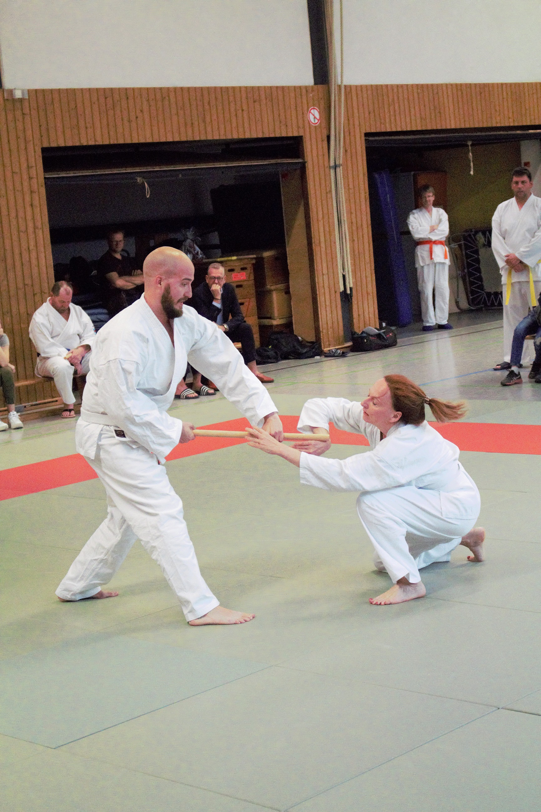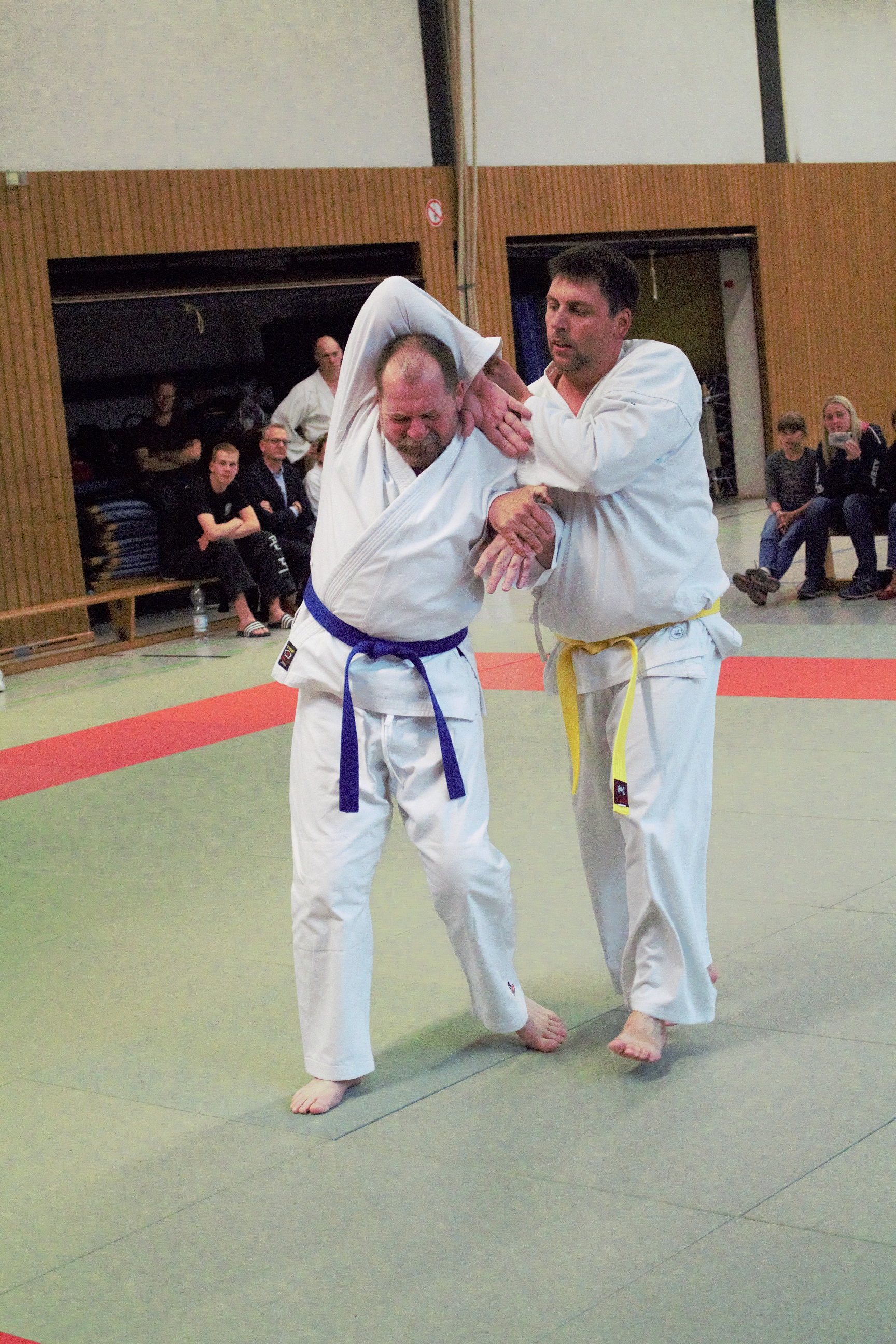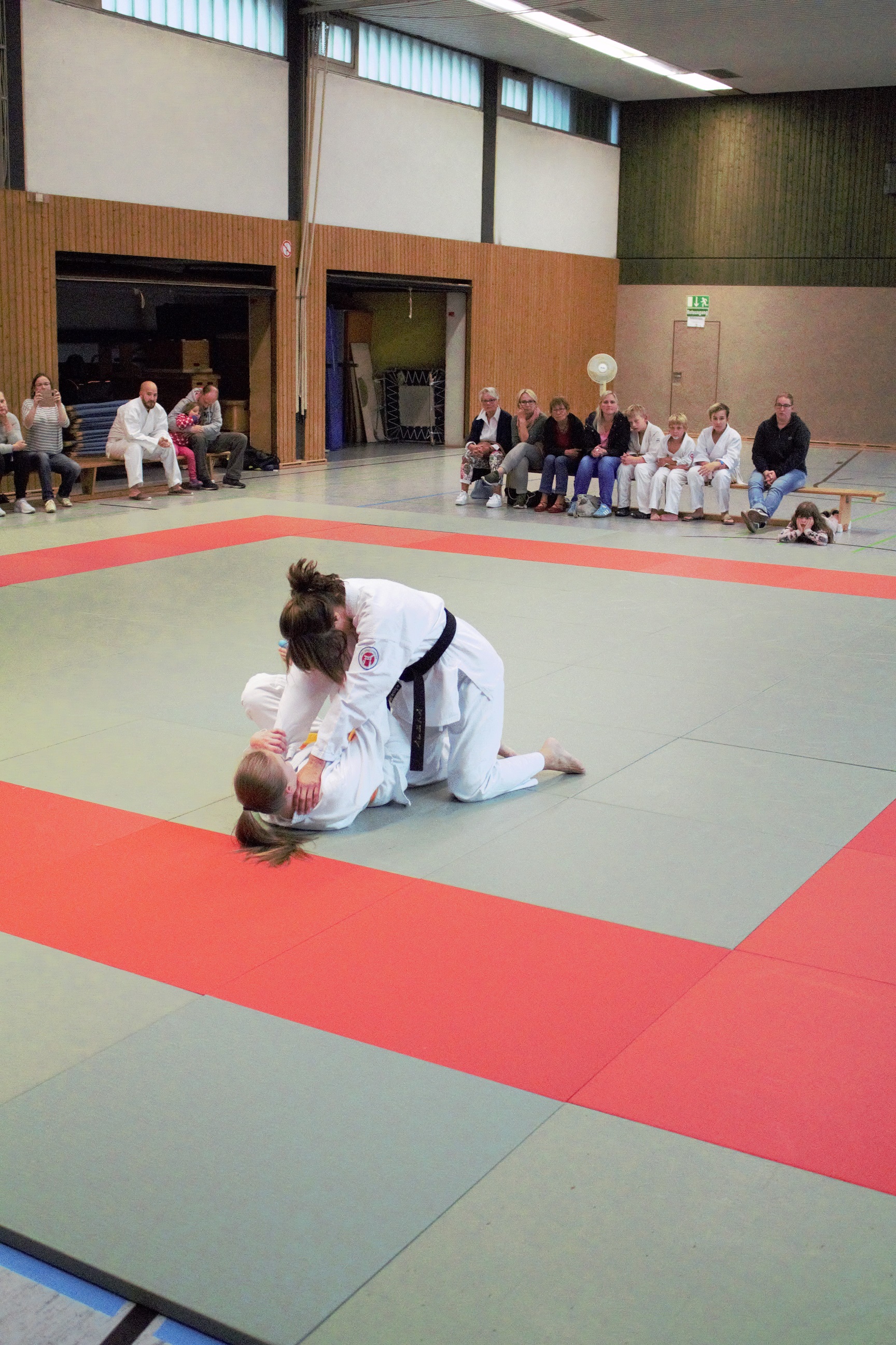 Mit ihren Partnern Thomas und Uli führten sie die nächsthöhere Stufe des Jiu Jitsu vor.