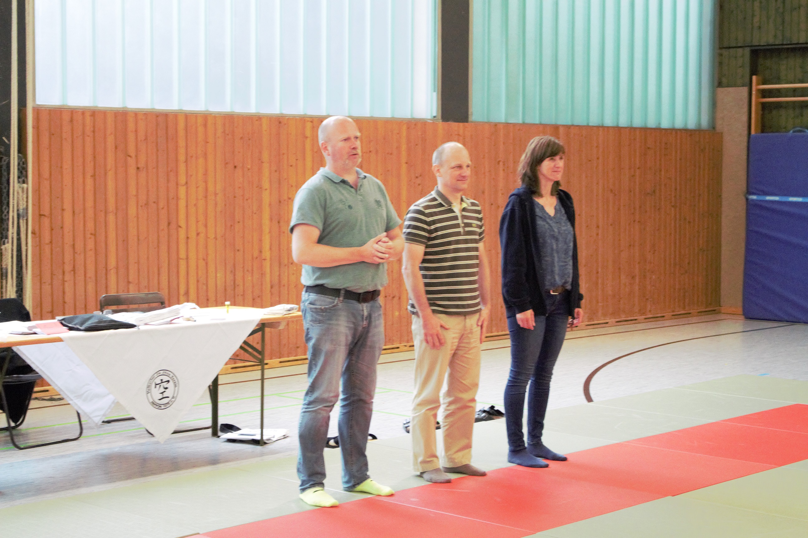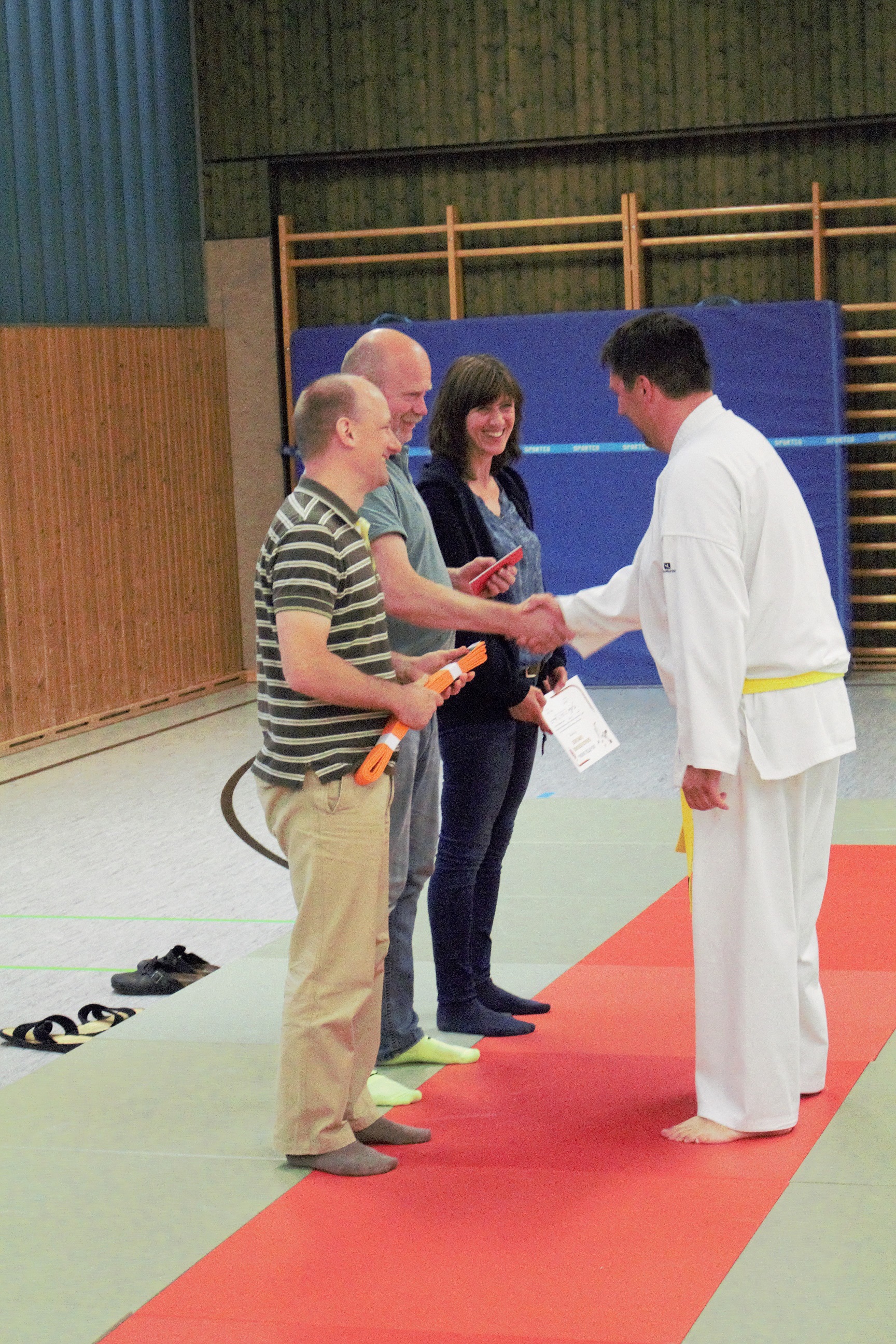 Ebenso von den Prüfungen von Michael und Tim, die beide für den orangen Gürtel antraten.