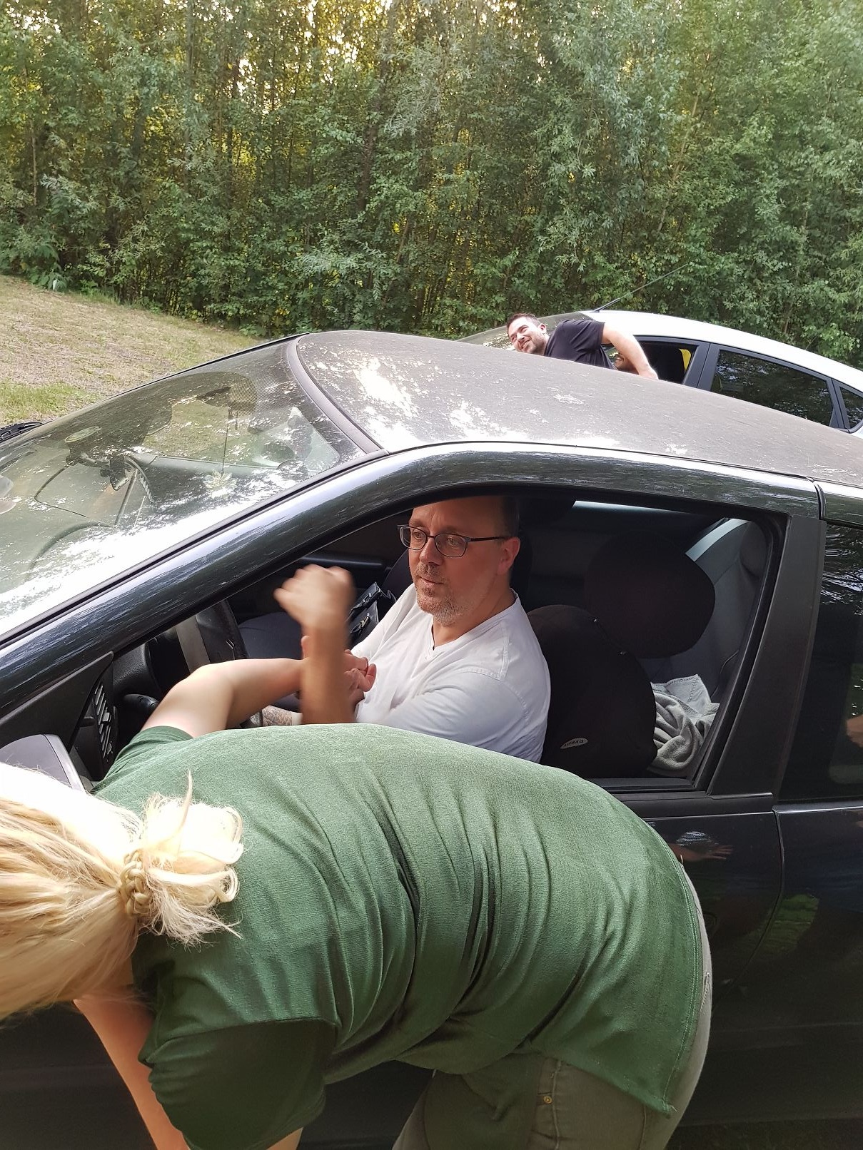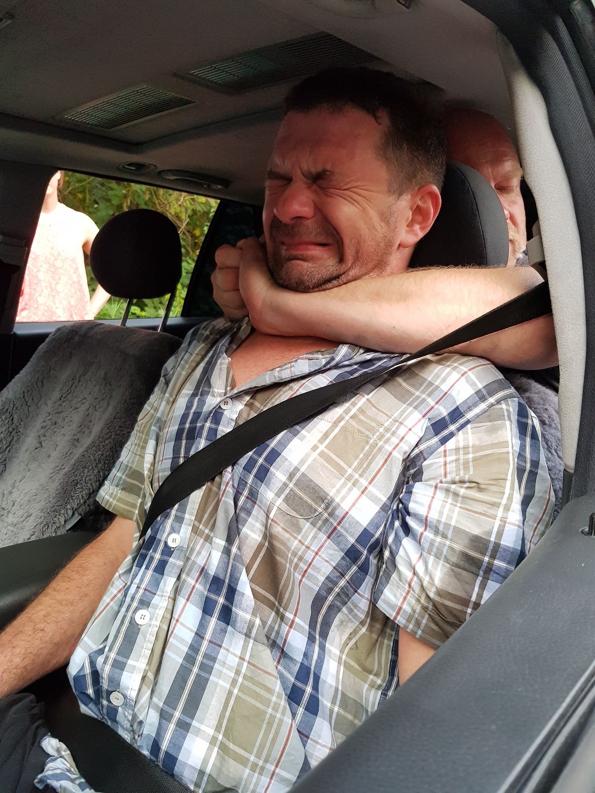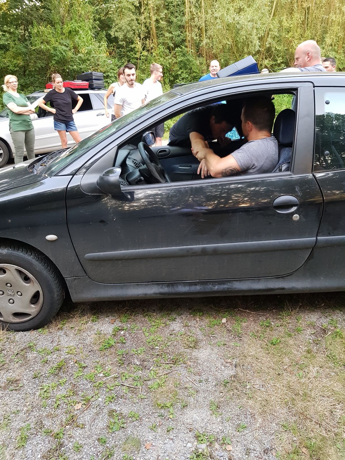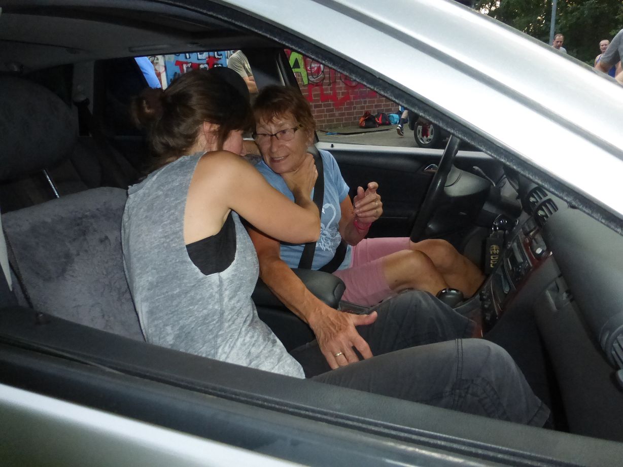 Ich hatte mir lange Gedanken gemacht, wie wir an diesem Abend den ersten Kontakt zum Auto herstellen könnten. Irgendwann war mir eine kleine Erste-Hilfe-Übung aus meiner Zeit des Zivildienstes eingefallen. Noch kurz hatte ich mit einem aktiven Feuermann abgeklärt, ob meine Idee auch heute noch so gelehrt wird - dann stand der Start fest. Die Evakuierung eines Bewusstlosen zu zweit vom Fahrersitz. Sofort war das Eis gebrochen - oder sagt man bei knapp 40 Grad besser geschmolzen? - und wir konnten mit den Selbstverteidigungstechniken am PKW beginnen.