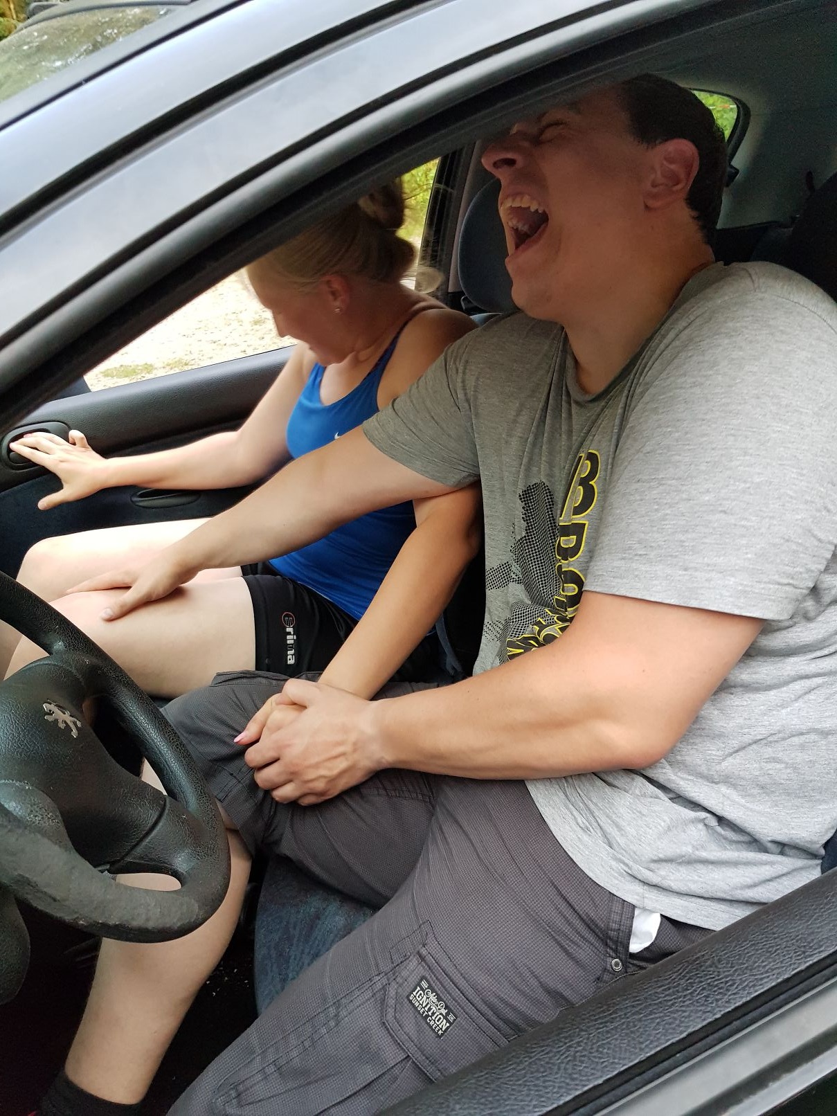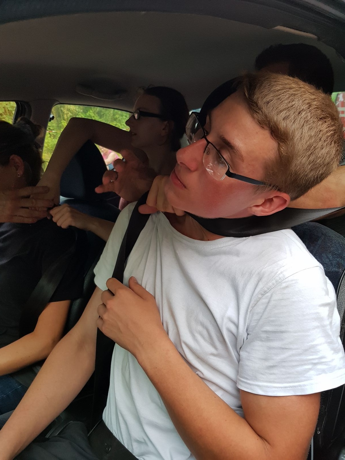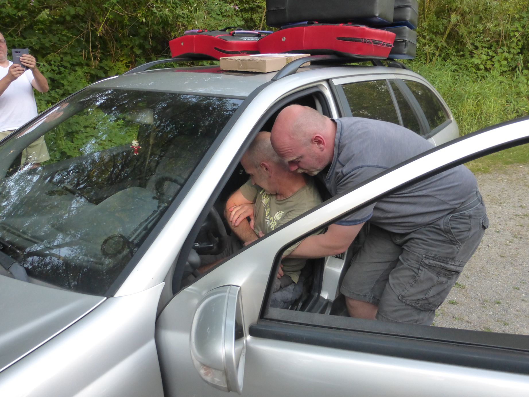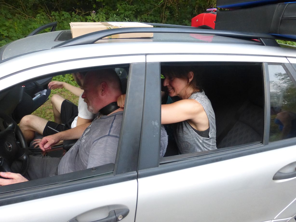 Ich hatte mir lange Gedanken gemacht, wie wir an diesem Abend den ersten Kontakt zum Auto herstellen könnten. Irgendwann war mir eine kleine Erste-Hilfe-Übung aus meiner Zeit des Zivildienstes eingefallen. Noch kurz hatte ich mit einem aktiven Feuermann abgeklärt, ob meine Idee auch heute noch so gelehrt wird - dann stand der Start fest. Die Evakuierung eines Bewusstlosen zu zweit vom Fahrersitz. Sofort war das Eis gebrochen - oder sagt man bei knapp 40 Grad besser geschmolzen? - und wir konnten mit den Selbstverteidigungstechniken am PKW beginnen.