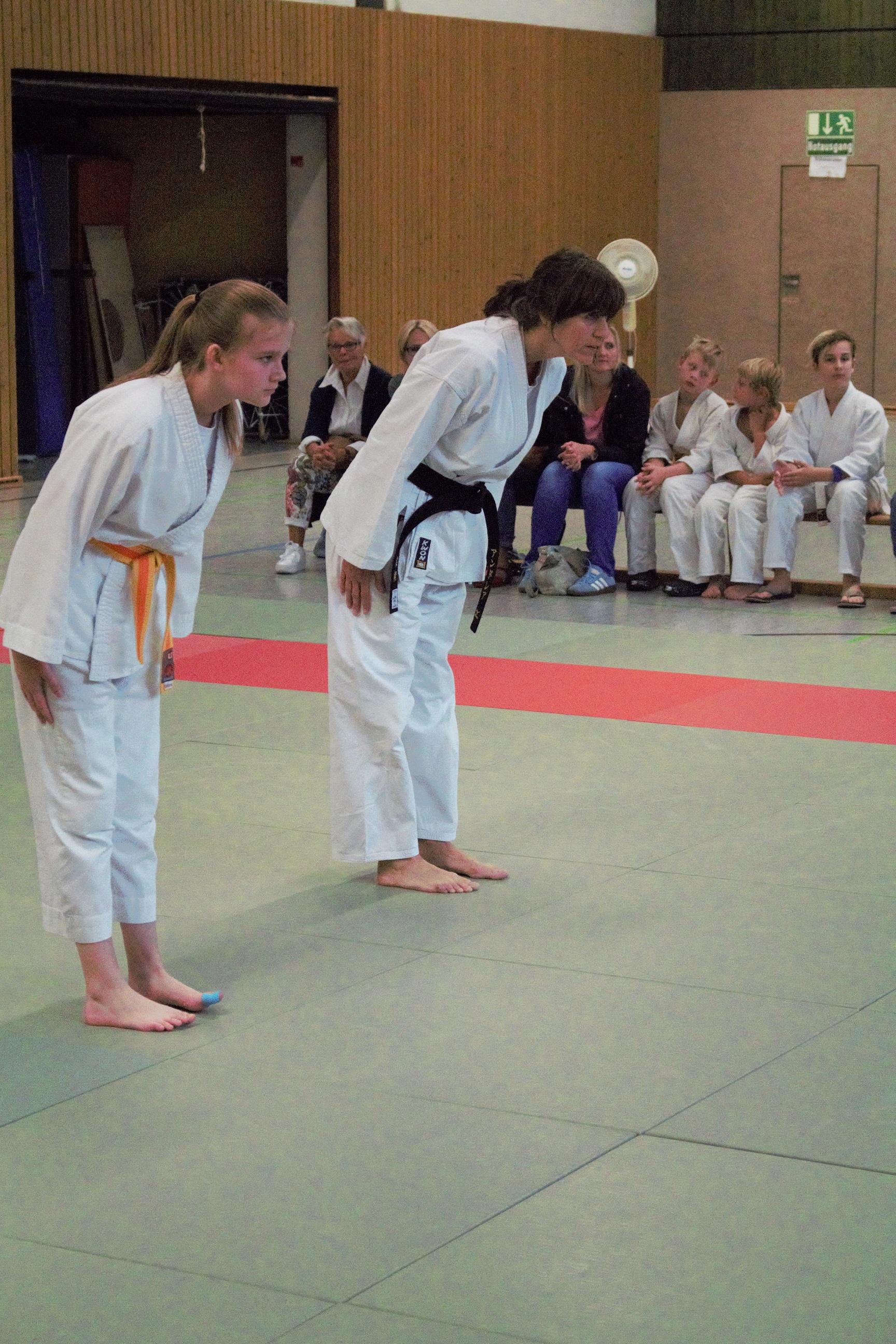 Ich habe mich sehr gefreut, dass Andrea mit mir meine Prüfung gemacht hat. Denn es ist nicht gerade selbstverständlich, dass eine Dan-Träger mit jemandem die Prüfung zum Orangegurt macht. Darum will ich Andrea hier nochmals danke sagen.