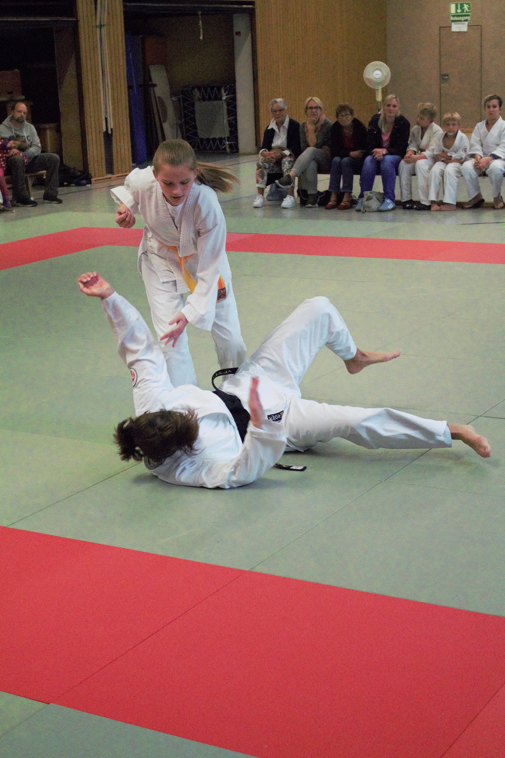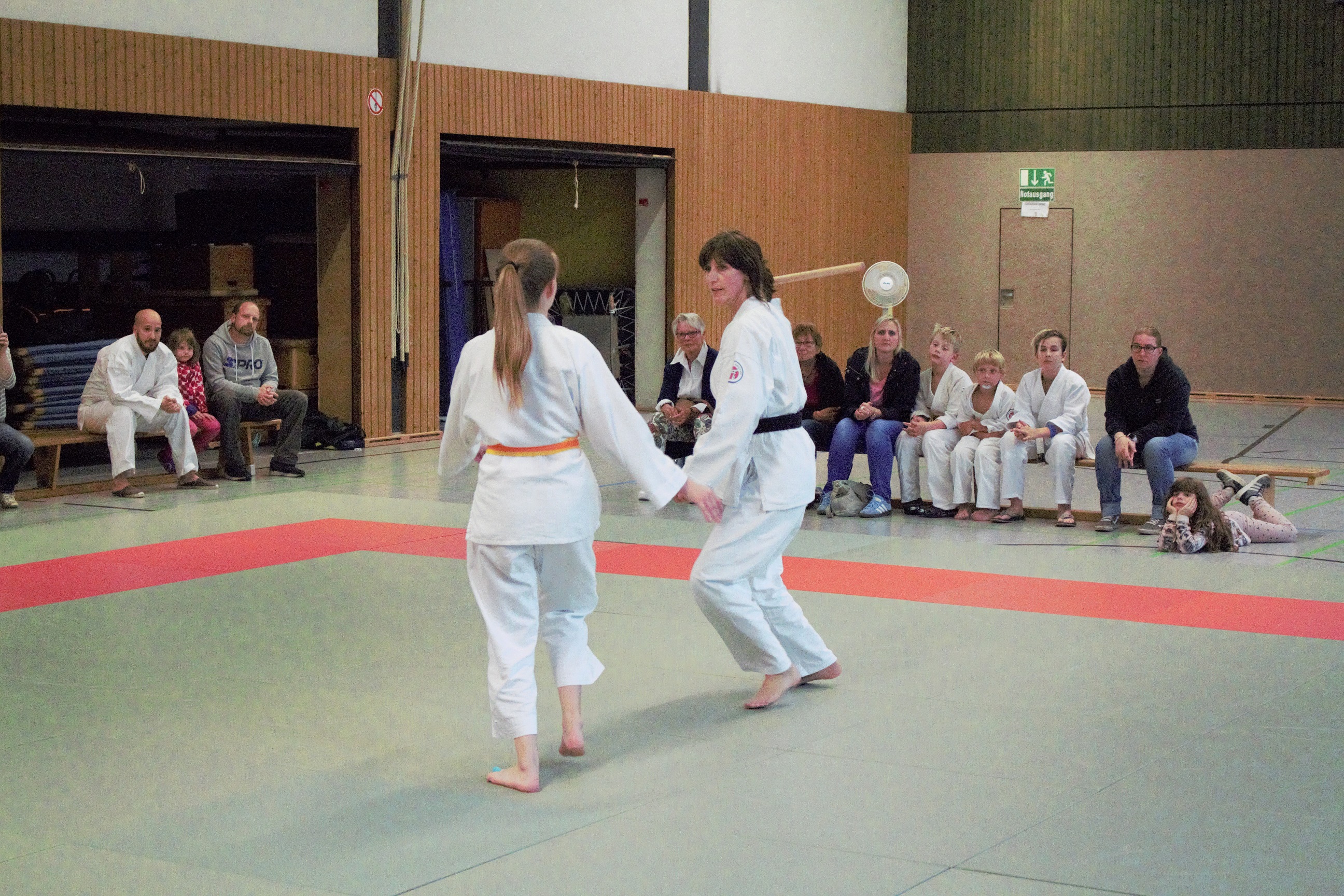 Ich bin mit meiner Kondition relativ gut ausgekommen. Ich dachte es wird schwerer. Die Prüfer hab ich während meinen Techniken nicht beachtet, denn bei meiner ersten Prüfung wurde mir gesagt, dass ich nicht die Prüfer anschauen soll, sondern meinen Uke. Natürlich hab ich das ein oder andere Mal doch hin geguckt. Bei den Zuschauern war das etwas anders, da auch meine Mutter und mein Vater unter den Zuschauern gesessen haben und ich ihre Gesichter sehen wollte. Weil das eine etwas andere Prüfung war als sonst - schon etwas wilder. Aber hingeguckt hab ich nur zwischen den Techniken. Zum Beispiel, als ich meinen Anzug richten musste. Ich habe alles gezeigt, was ich zeigen wollte und ich habe alles gegeben. Manche Techniken hab ich dann zwischendurch doch vergessen. Sie sind mir aber glücklicherweise schnell wieder eingefallen.