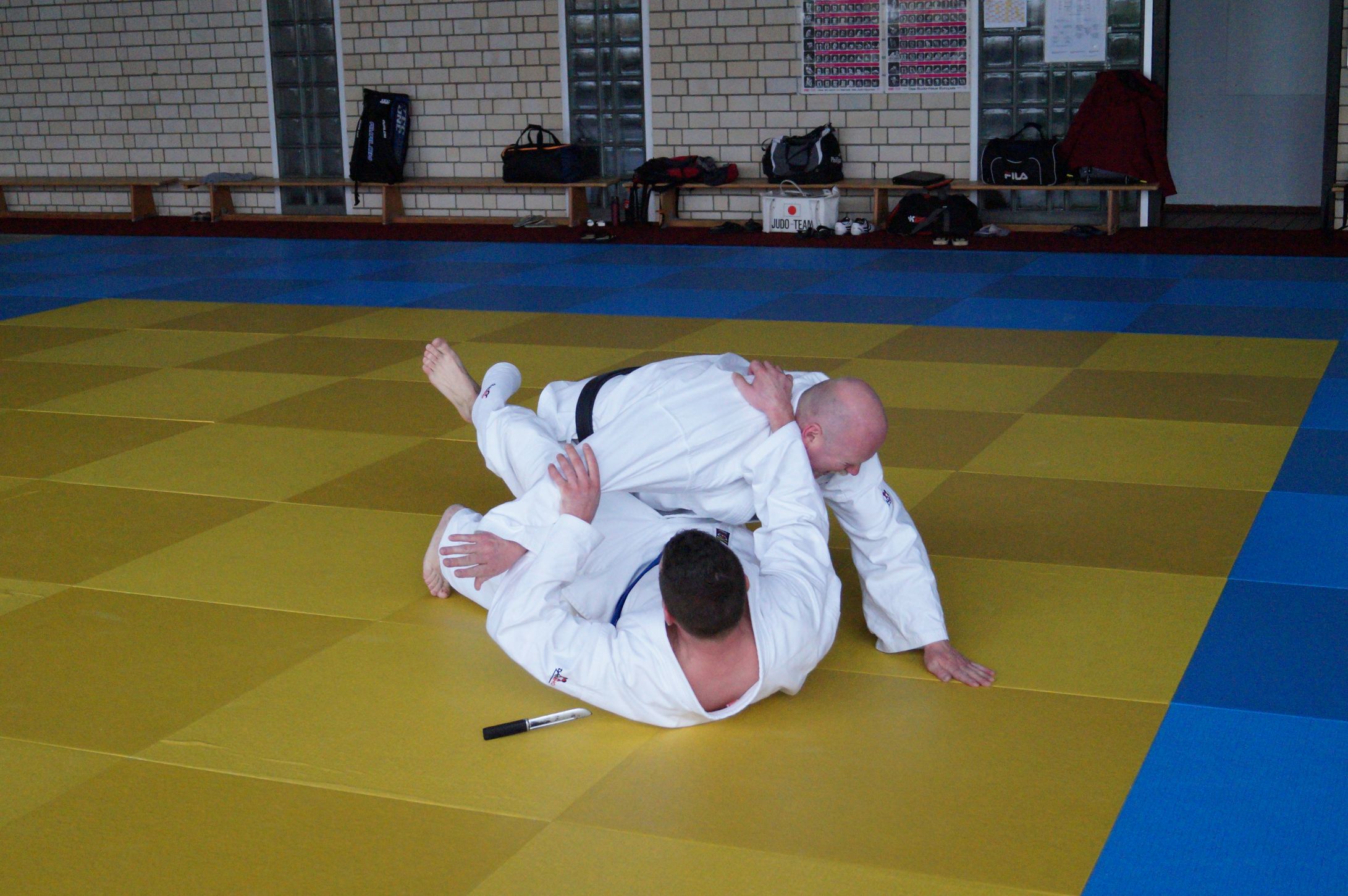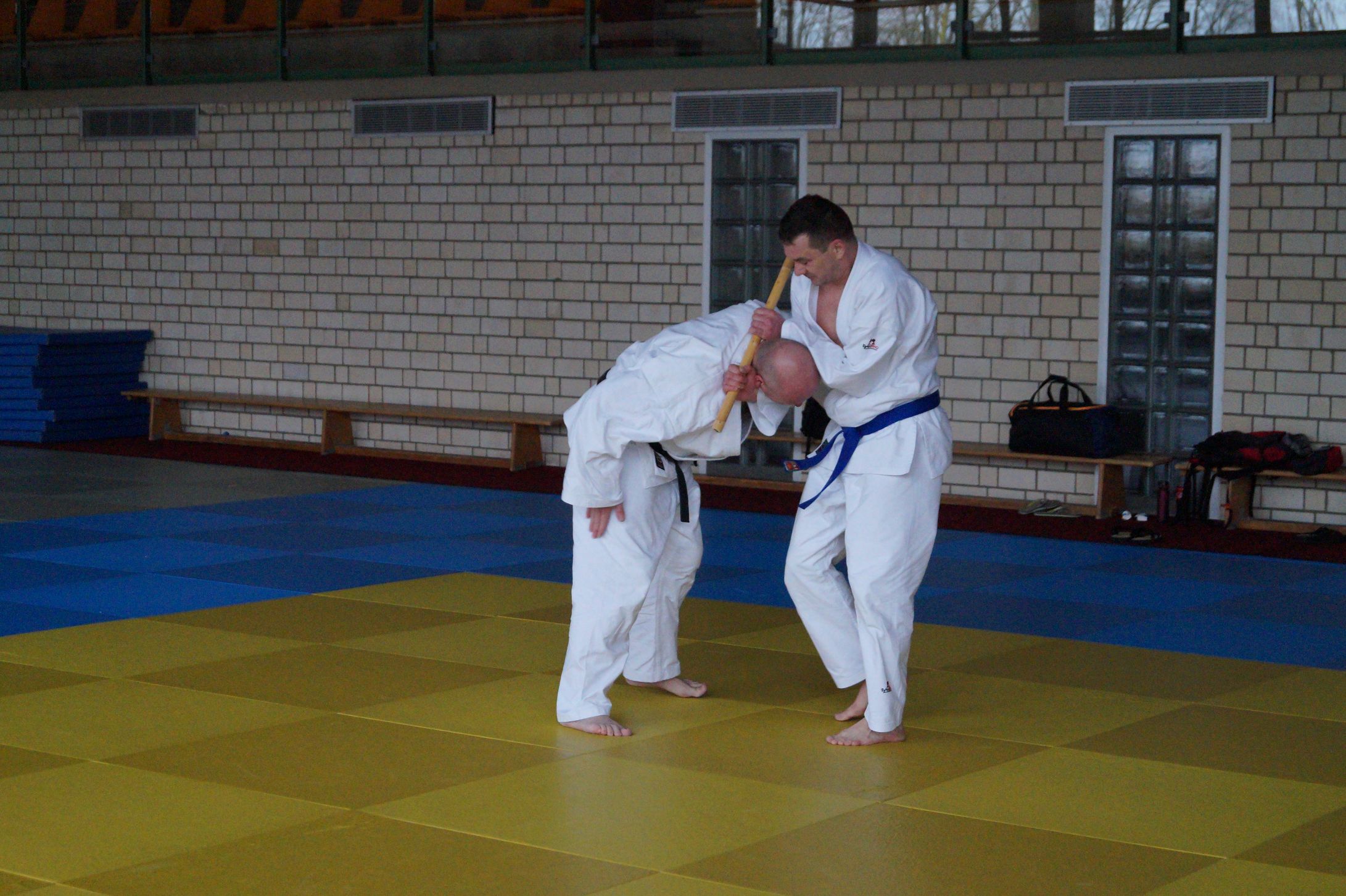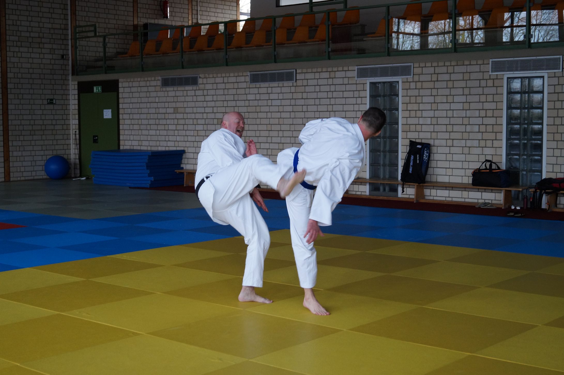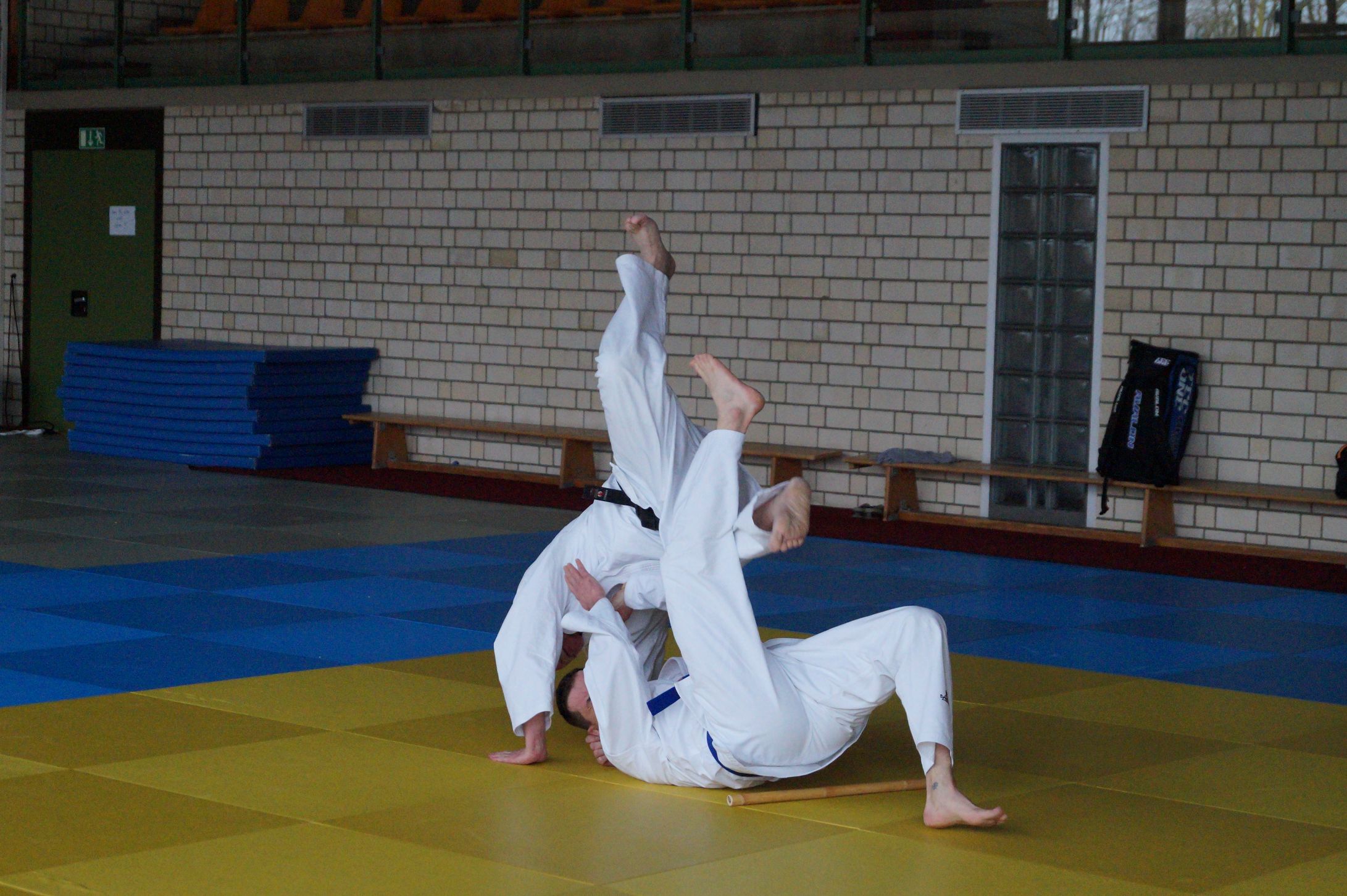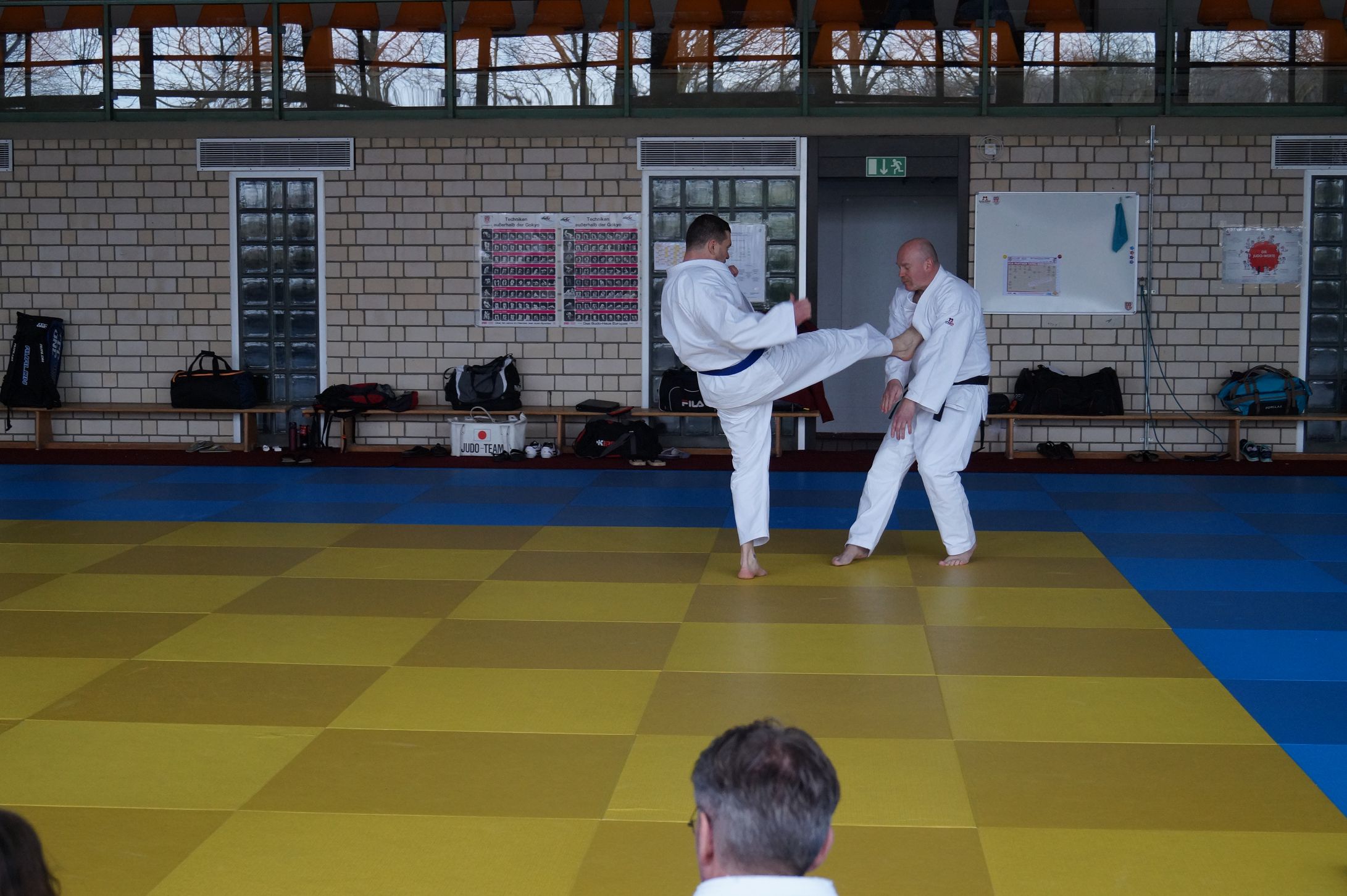 Die ideale Möglichkeit auf Schulungen diese Situation zur Schau stellen zu können, ist ein echter Prüfling, mit echter Prüfung und echtem Lampenfieber. Am 8. März konnte Dieter Gobien seinen Prüfern einen Kandidaten für eine echte Braungurtprüfung präsentieren. Adam Jacko, einer unserer Jugendtrainer, stellte sich dieser Aufgabe. Zusammen mit seinem Partner Benedikt Meinhardt, Trainer in unserer Erwachsenengruppe, trat er an.