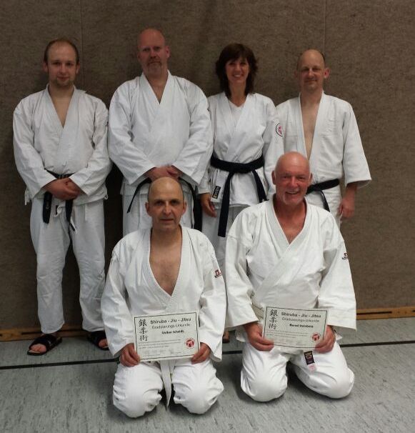 Im Anschluss an das Donnerstagstraining fand im Nippon Velbert die erste Shirubaprüfung statt. Shiruba Jiu Jitsu ist eine Form des Jiu Jitsu,in dem auf das Werfen und Fallen verzichtet wird. Seit Ende 2016 wird es auch im Nippon Velbert erfolgreich angeboten. Die Sportskameraden Bernd und Volker sind also die ersten Shiruba-Prüflinge unseres Vereins.